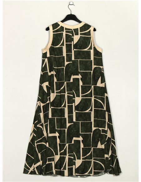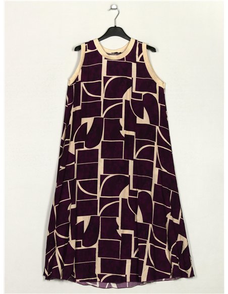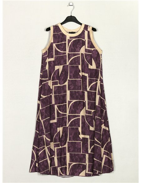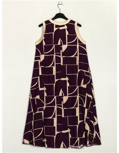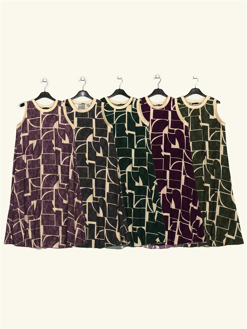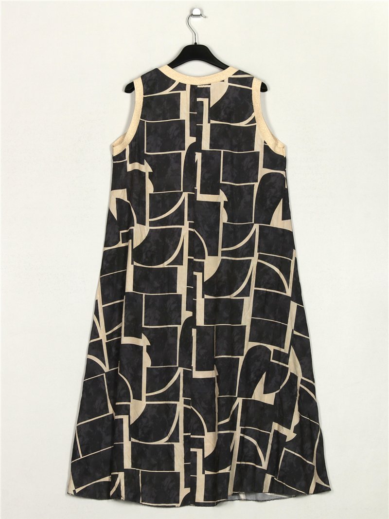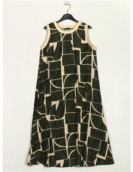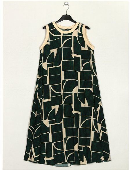 Vestido estampado. Gola redonda. Manga cavada.