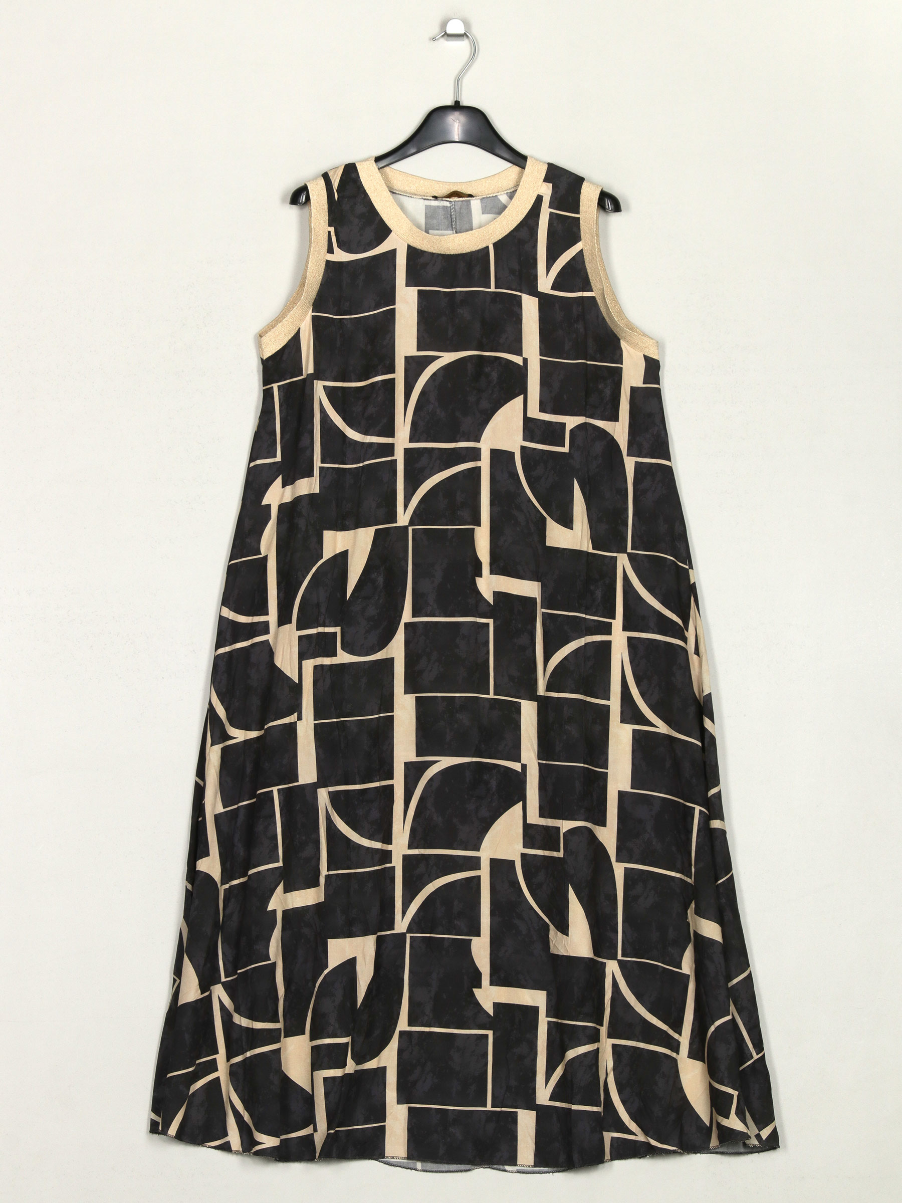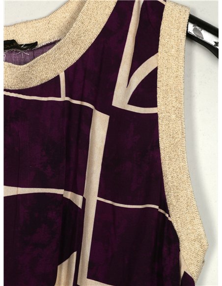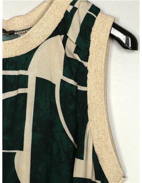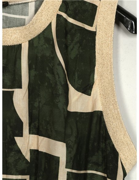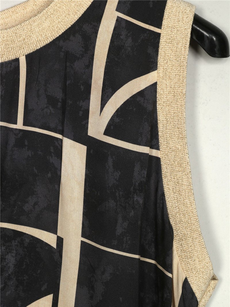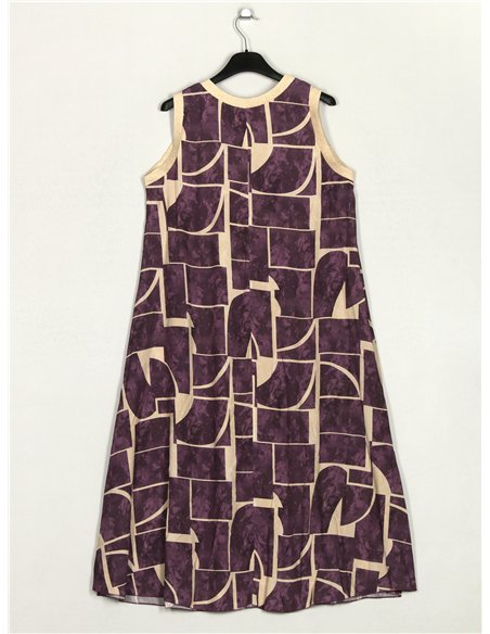 Vestido estampado. Gola redonda. Manga cavada.