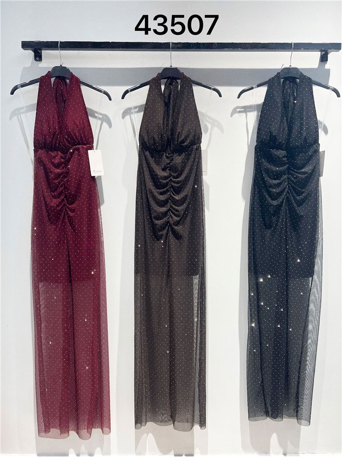 Detalhes do vestido longo de festa de tule plumeti com decote halter SP-43507