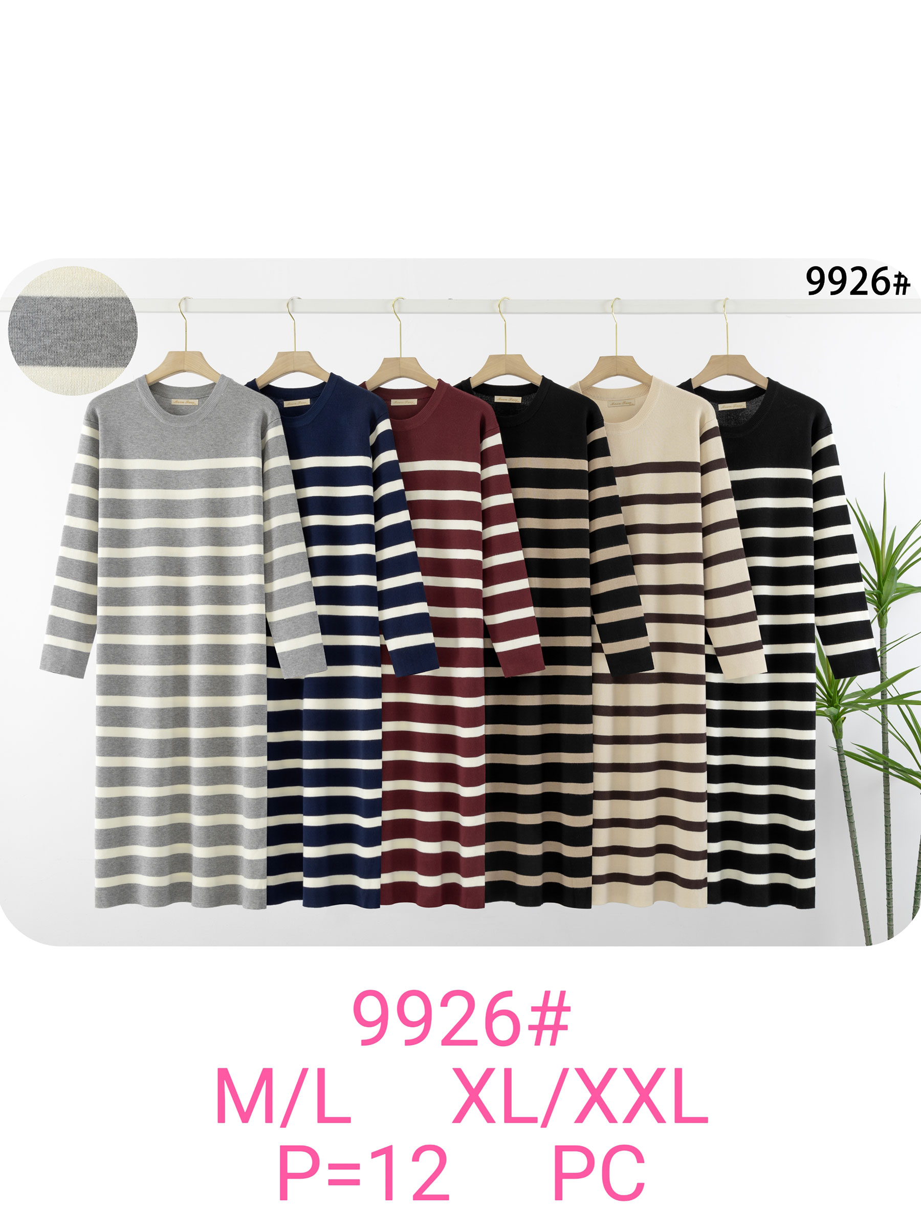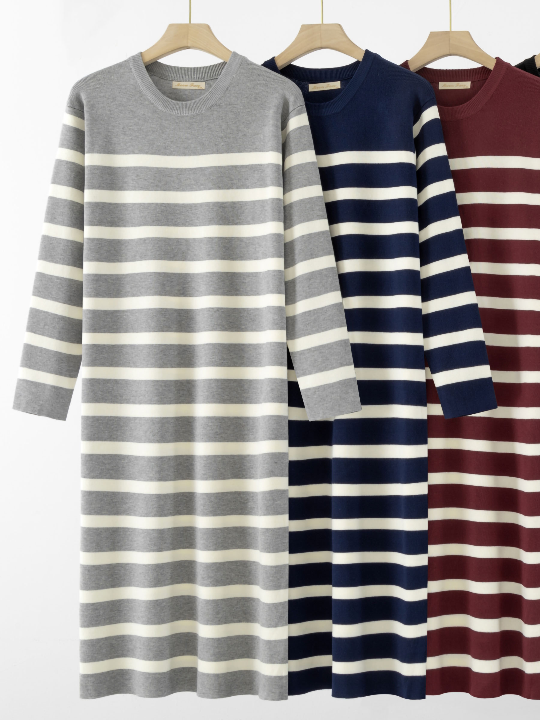 Detalhes do vestido de malha listrada com gola redonda FA-9926