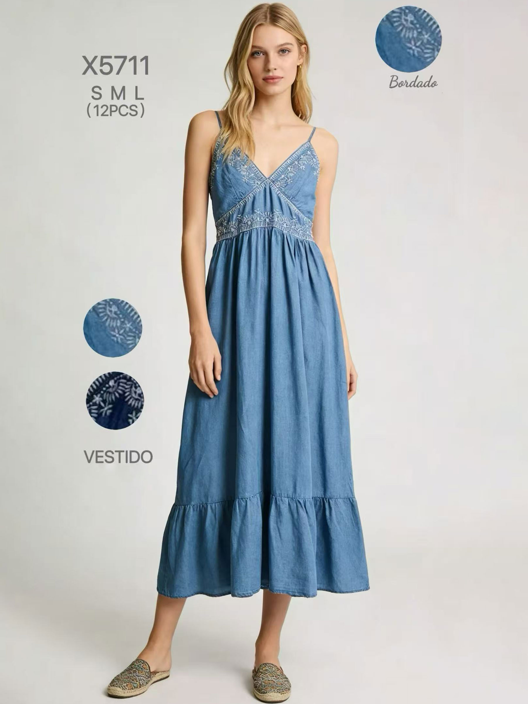 Novo Mín. 6 Vestidos Vestido longo boho bordado com alças MF-18102 Tamanhos: M-L-XL.Coleção: Primavera/Verão 2026. Ver preço
